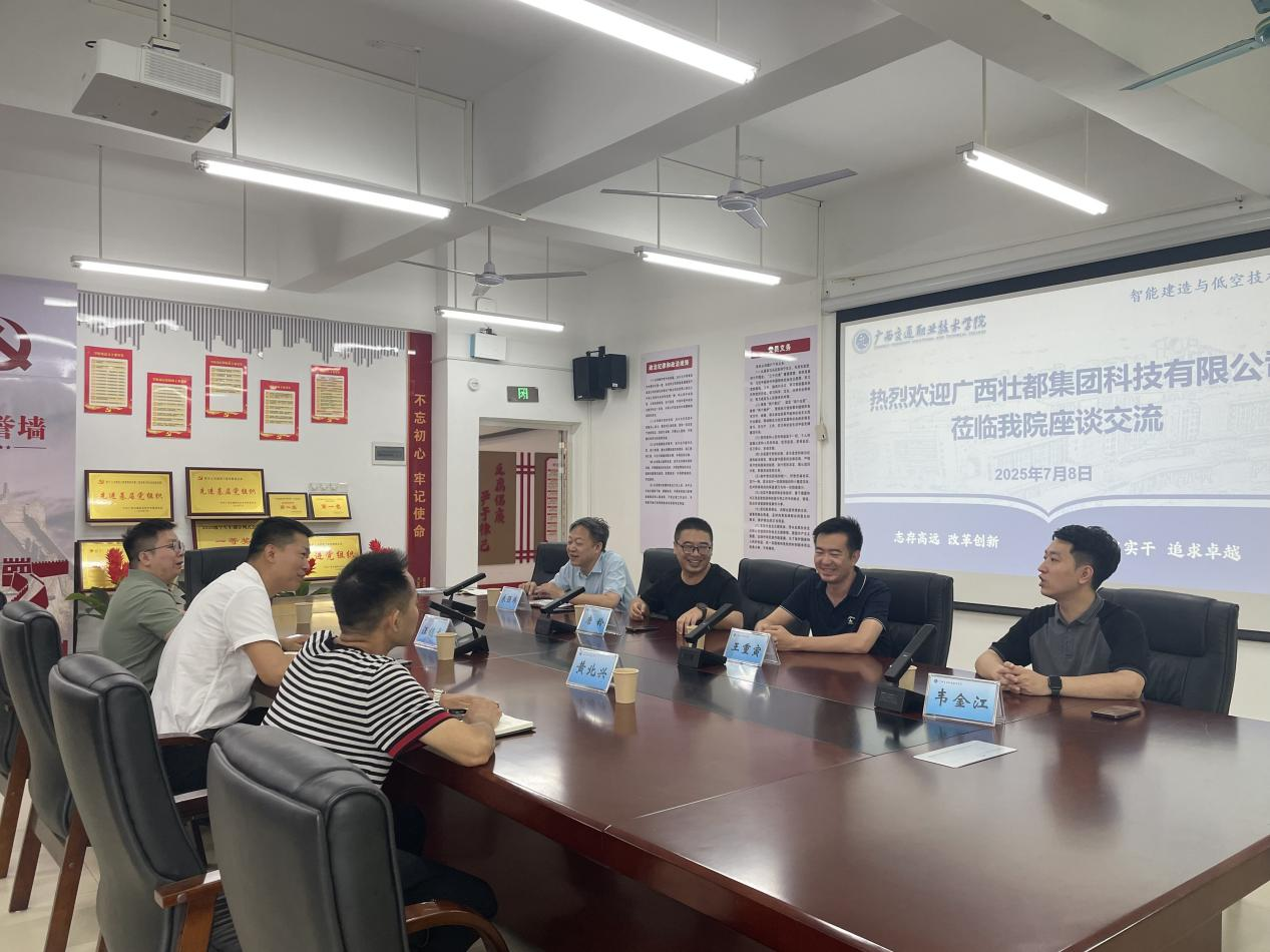 智能建造与低空技术学院李基恒、黄北兴;中国-东盟产业与技术研究智库联盟低空专委会主任朱强炜;广西景航无人机有限公司执行董事、总经理韦金江;虹鹏科技低空运营管理中心主任王重寅等一行人参加座谈活动。
